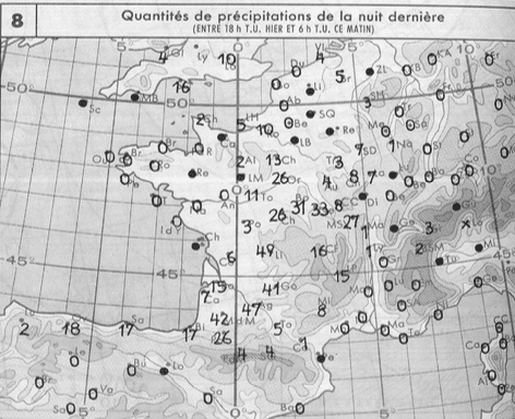 Orages et inondations : Cumuls de pluie de la nuit du 30 au 31 juillet 1978