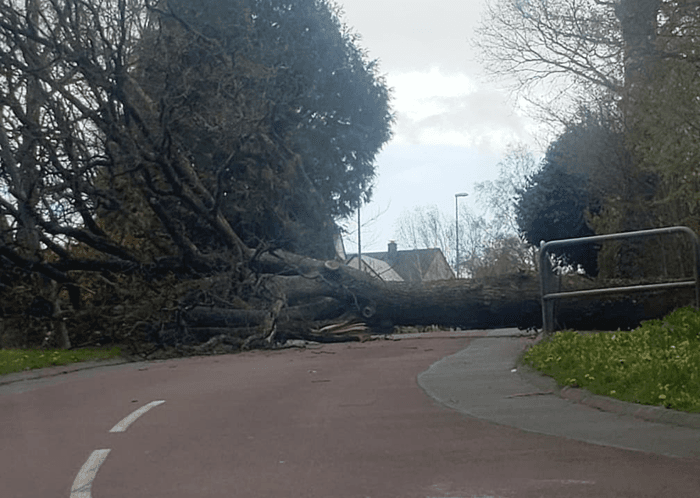 Arbre couché par la tempête Noa à Marigny-le-Lozon (50) ce mercredi 12 avril 2023 – photo Vivi Darmobit