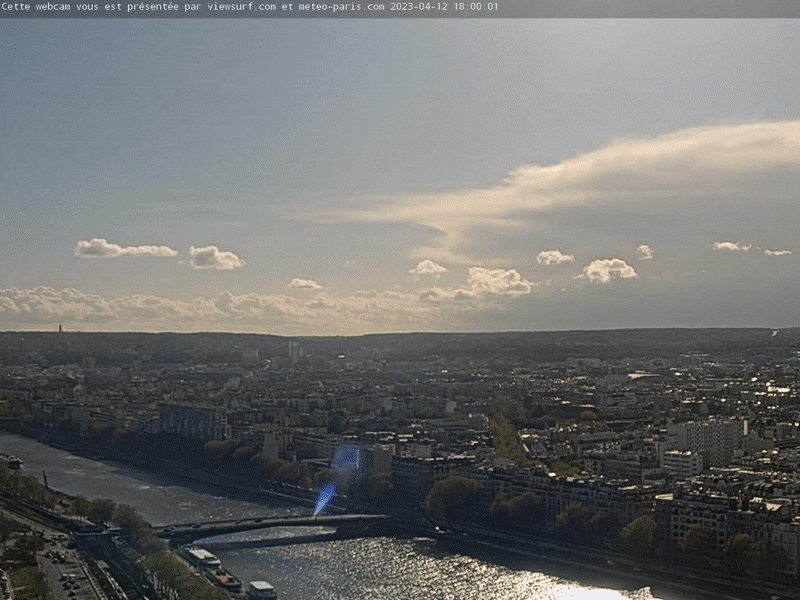 Au sein du ciel de traîne qui s'est mis en place sur le nord et l'ouest de la France, des averses parfois fortes et orageuses ont circulé en cours de journée. Elles ont localement apporté des chutes de grêle comme du côté de Beauvais (Oise) ou Melun (Seine-et-Marne). L'un de ces orages a touché Paris à 19 heures ce mercredi 12 avril 2023, immortalisé par notre webcam ci-dessous. À son arrivée, une rafale de 92 km/h a été enregistrée à la station de Paris-Montsouris et 120 km/h au sommet de la Tour Eiffel !