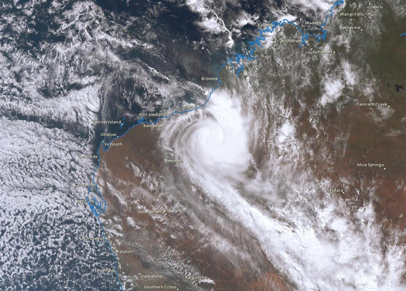 Bien heureusement, les régions touchées sont majoritairement rurales, ce qui a grandement limité le nombre de victimes potentielles au passage de ce cyclone majeur. Celui-ci fut d'ailleurs le plus puissant à toucher l'Australie Occidentale dans l'histoire des relevés météorologiques et le plus intense à toucher le pays depuis plus de 10 ans.