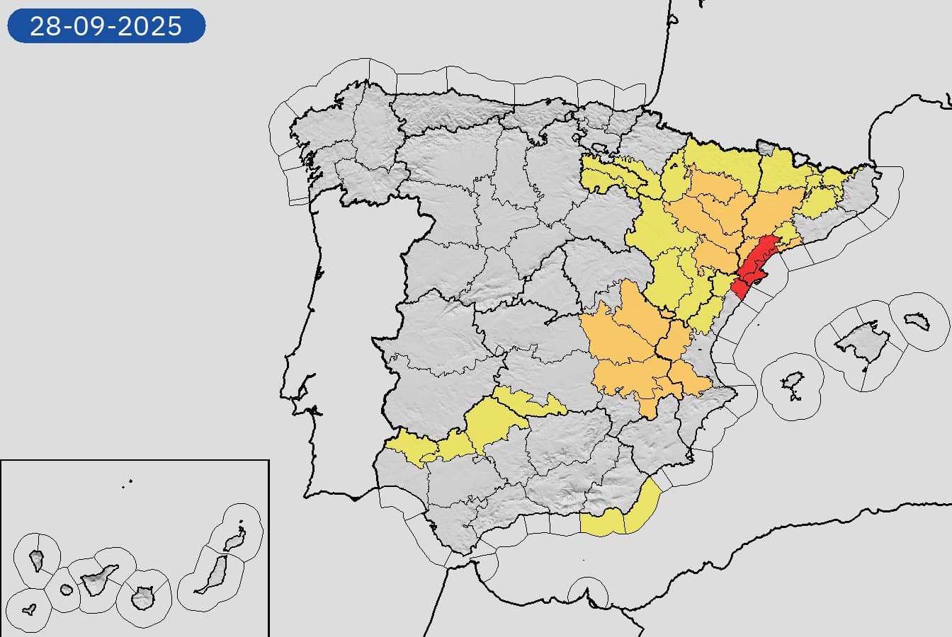 Alerte rouge sur la côte est de l'Espagne en milieu de journée du 28 septembre 2025 – AEMET