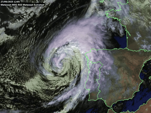 Animation de l'approche de l'ex-cyclone Gabrielle sur la péninsule ibérique – Meteosat