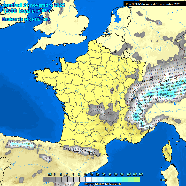 Couche de neige prévue au sol vendredi soir (à la fin de l'épisode de temps froid) - modèle météo GFS Meteociel